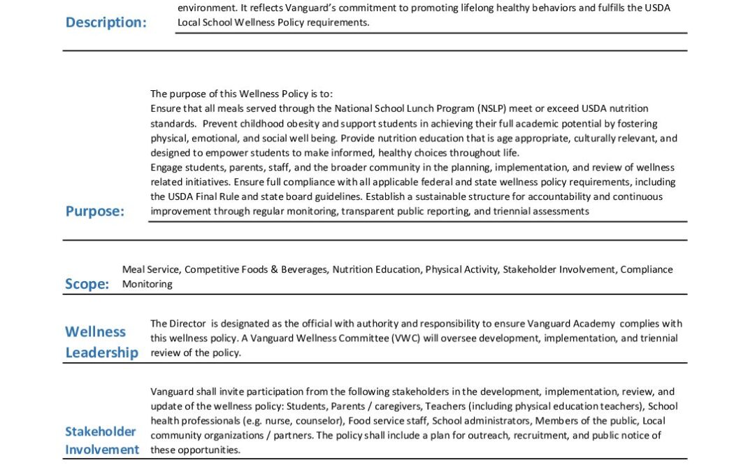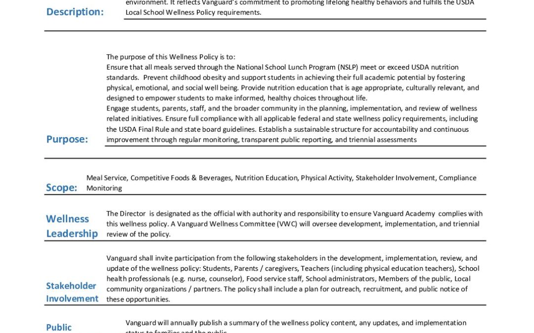 9.7 Wellness Policy